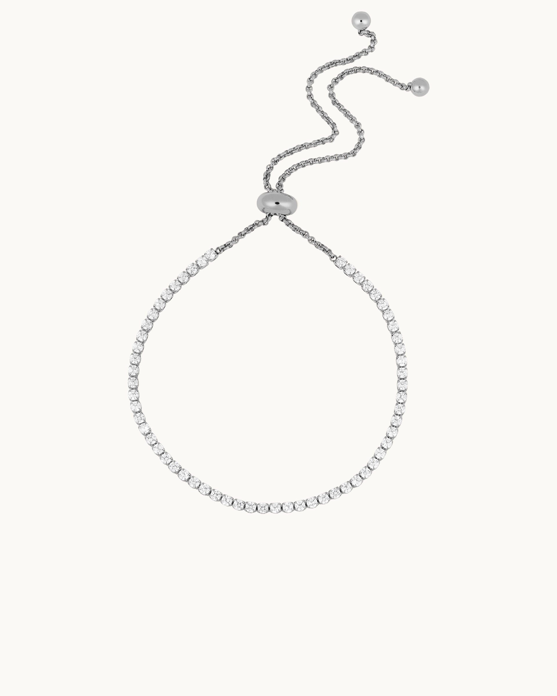 This adjustable bracelet features a continuous row of sparkling stones that create a clean, elegant look with refined shine. The classic design sits comfortably on the wrist, adding a polished touch whether worn alone or layered with other pieces.