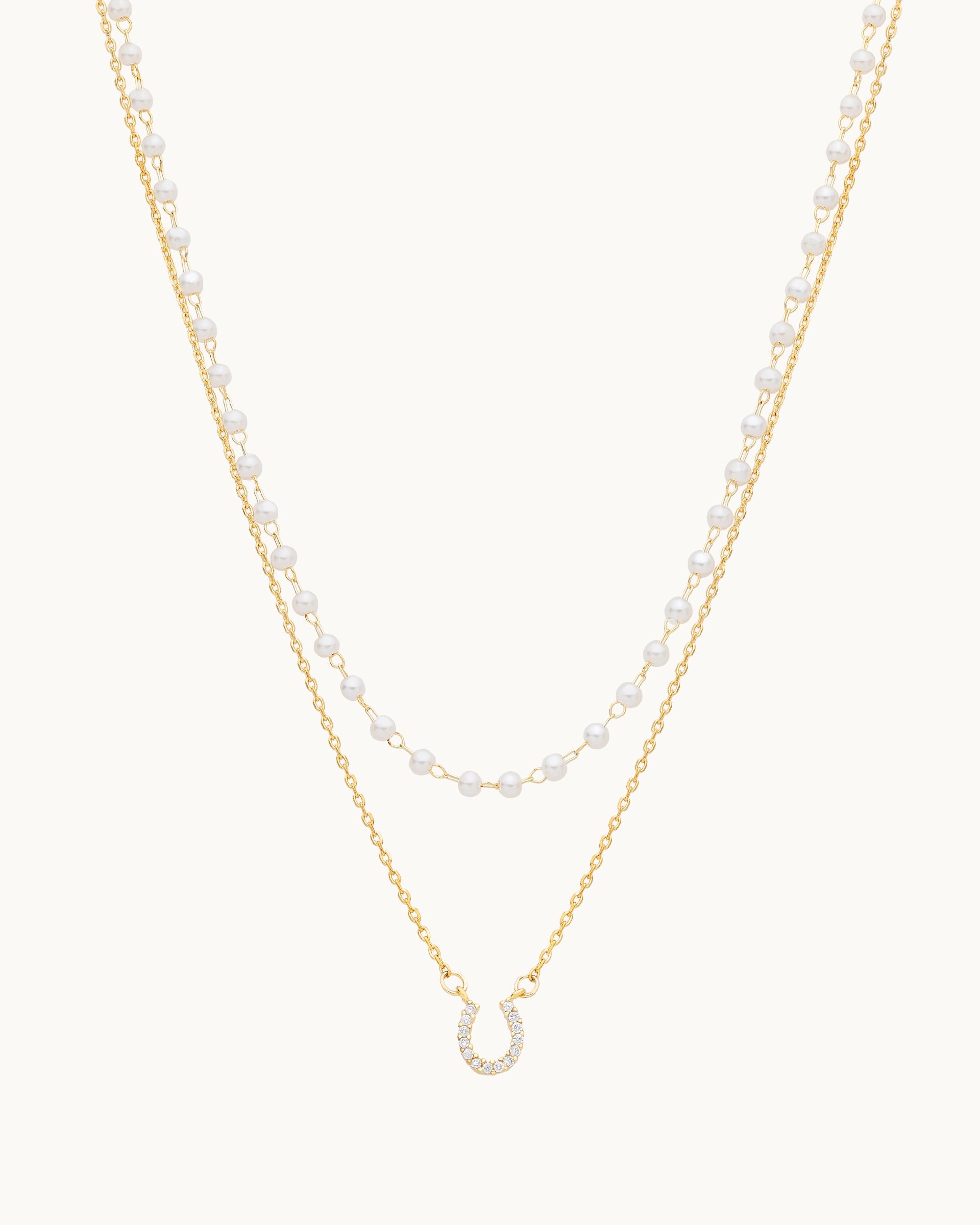 This layered necklace set pairs a delicate pearl-accented chain with a minimalist pendant necklace for a timeless, refined look. Designed to add subtle texture and elegance, it’s an easy choice for elevating everyday outfits and complementing special occasions.