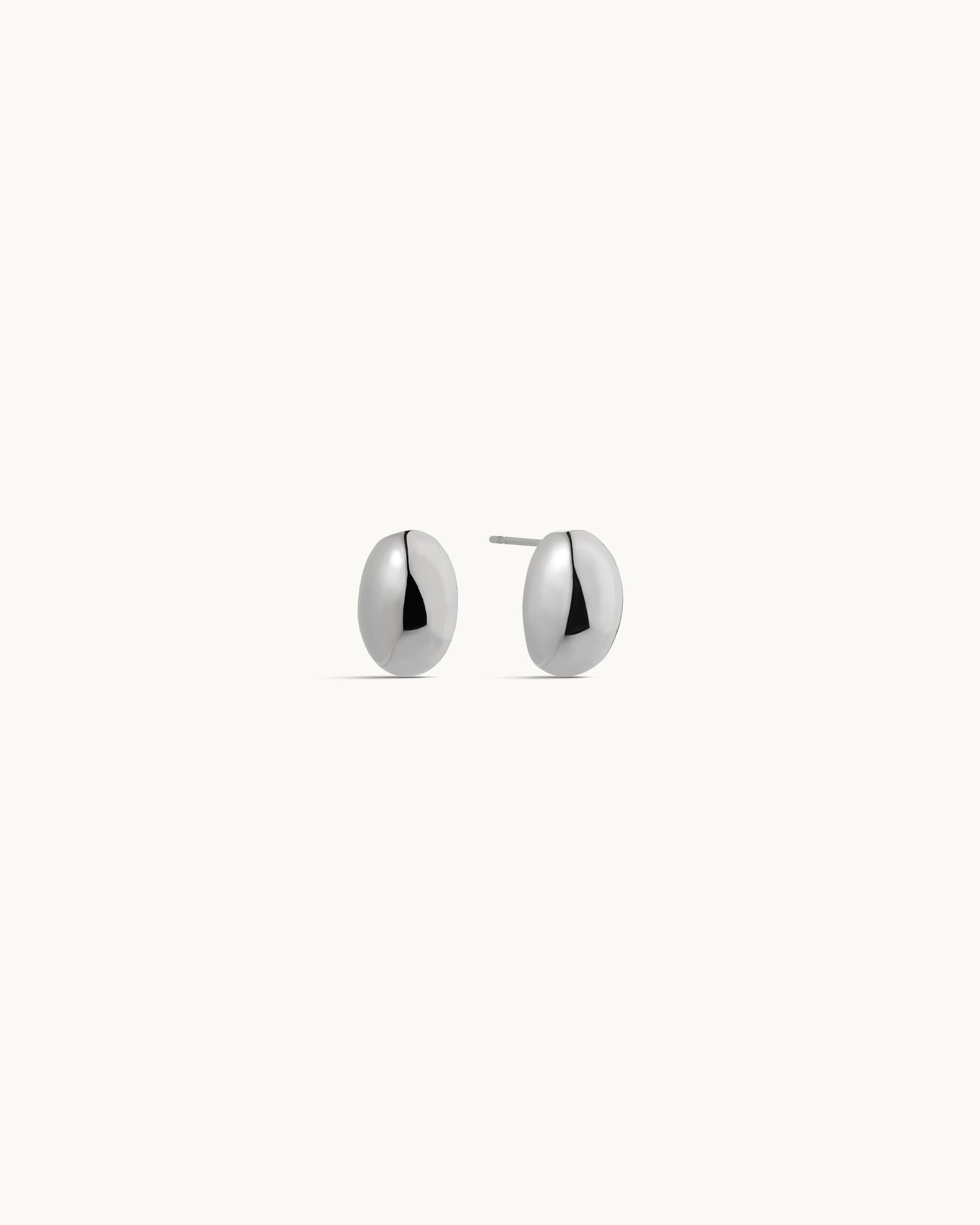 These earrings feature a smooth, rounded silhouette with a polished gold finish that gives them a clean, modern look. Their minimal shape makes them an easy everyday staple while still adding a touch of refined shine.