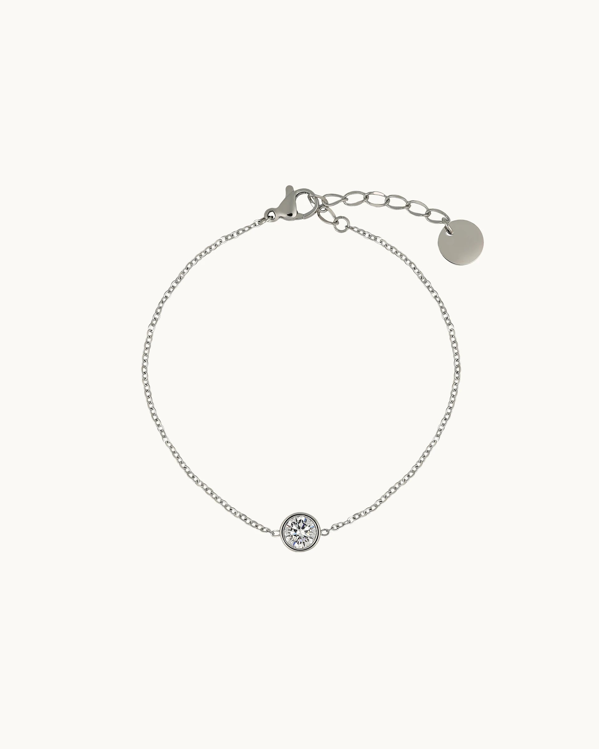 A minimalist and timeless design, this bracelet features a fine chain centred with a single bezel-set cubic zirconia for understated sparkle. The clean, balanced silhouette offers effortless elegance perfect for everyday styling.