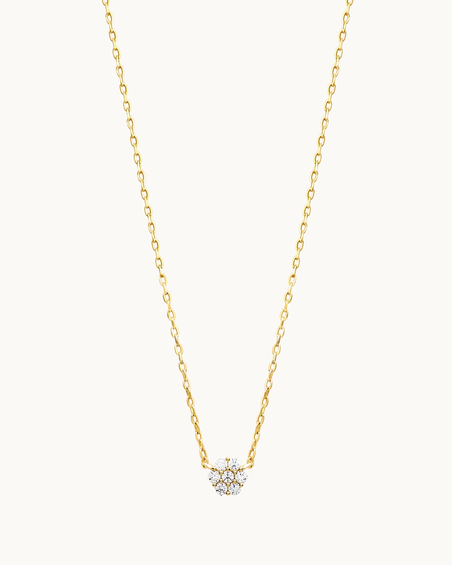 Radiate timeless beauty with this necklace, featuring a delicate floral-inspired pendant adorned with sparkling stones arranged in a cluster design. The pendant’s refined symmetry and brilliant shine create an elegant focal point that complements any neckline with subtle sophistication.