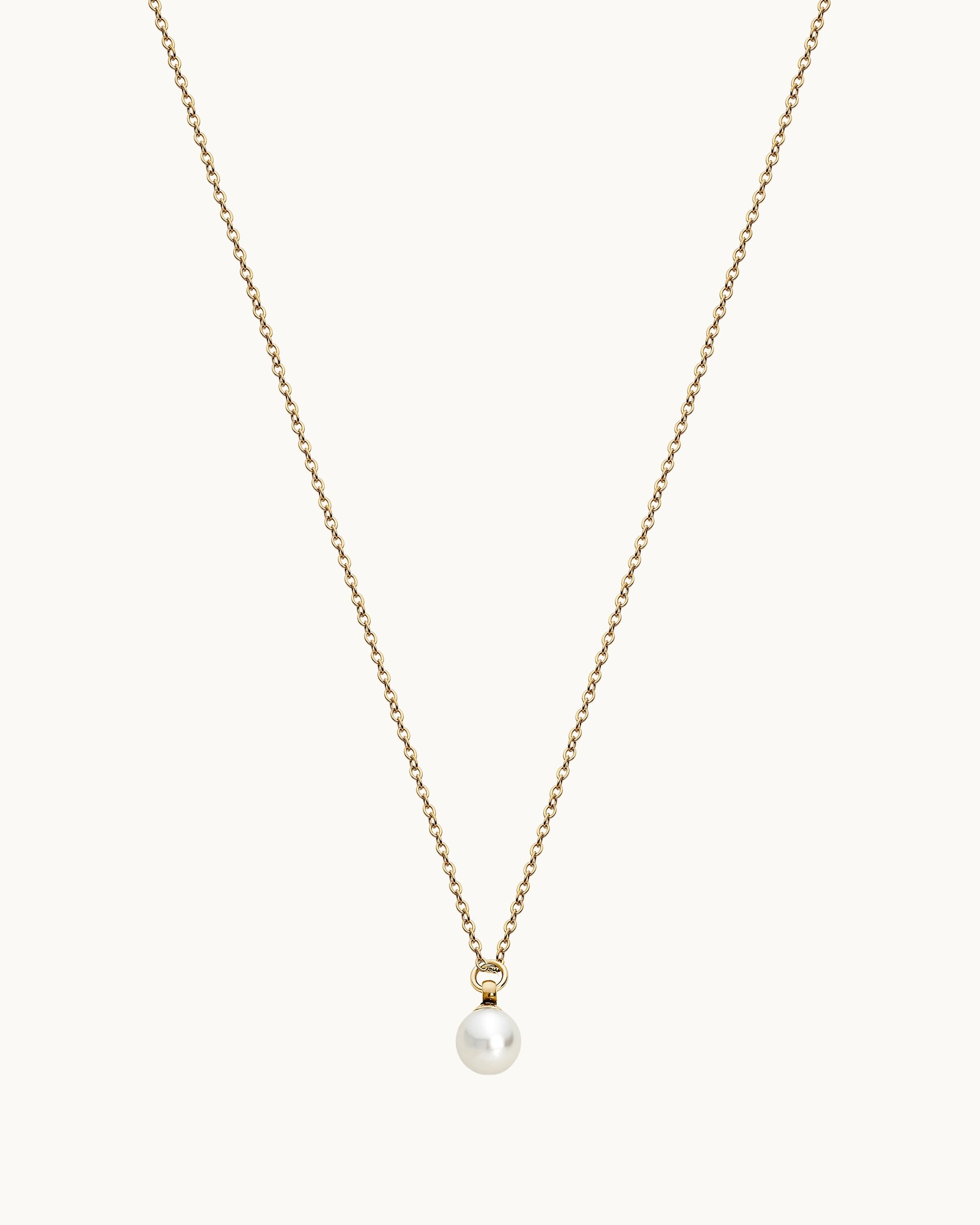 This necklace highlights a single lustrous pearl pendant that hangs gracefully from a fine silver-toned chain. Its clean and timeless design captures quiet elegance, making it a versatile piece for both everyday wear and special occasions.