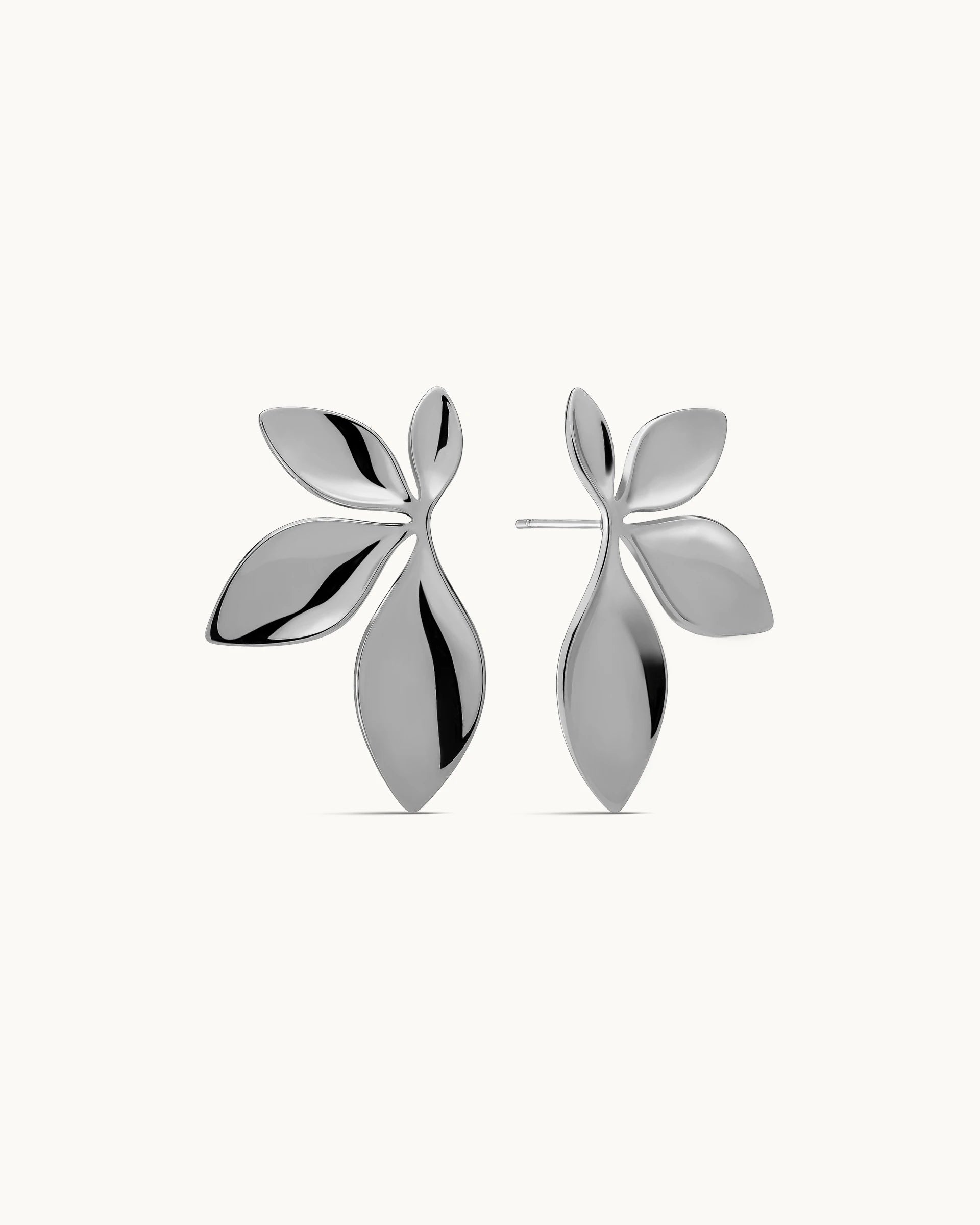 These earrings are designed with softly curved petal shapes that form a bold floral-inspired silhouette. The smooth, high shine surface creates a clean, contemporary look while maintaining an elegant feminine feel.