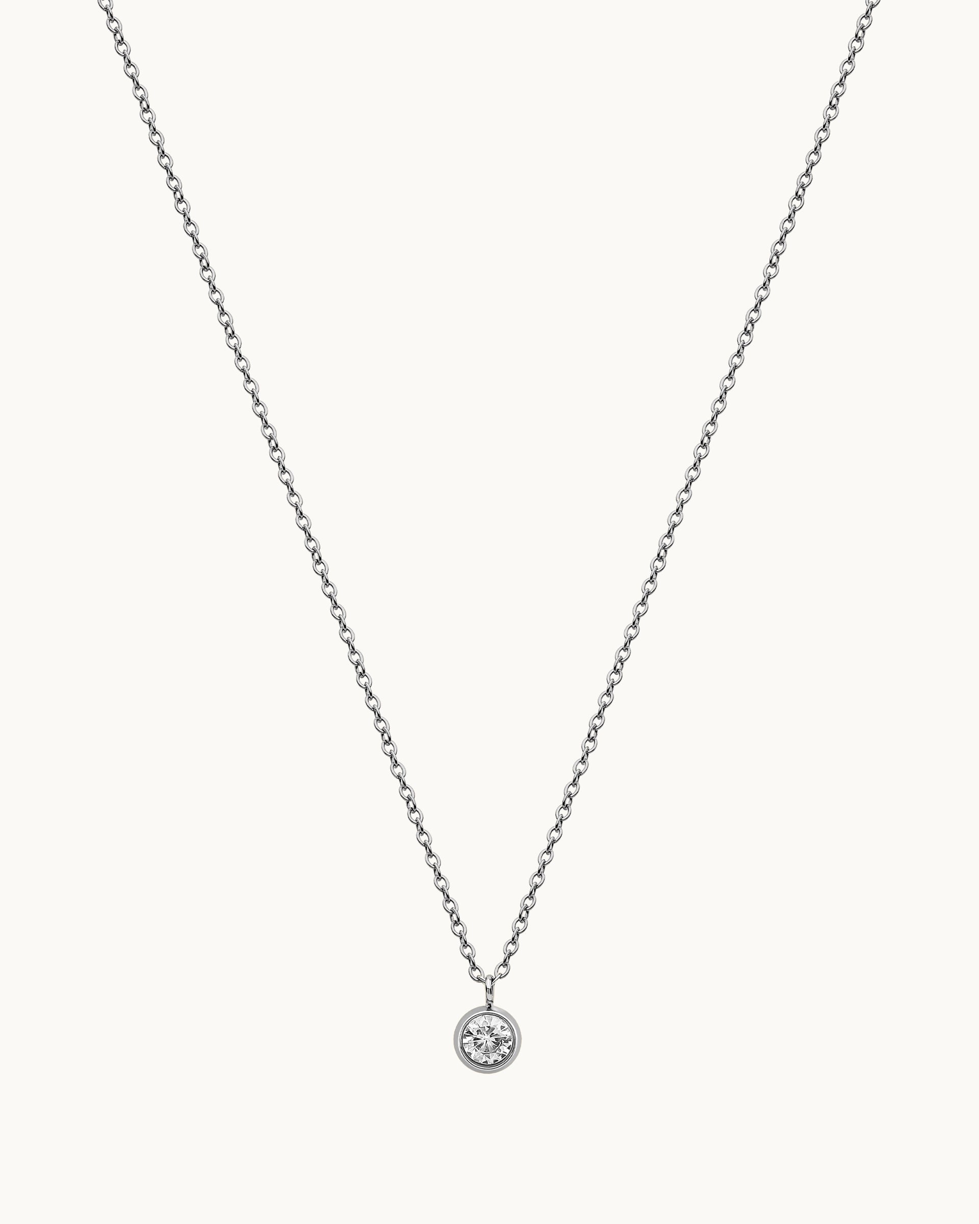 This necklace features a single round-cut stone set in a sleek bezel pendant that catches the light beautifully. Its minimalist design highlights the stone’s brilliance, creating an elegant and refined look suitable for any occasion.
