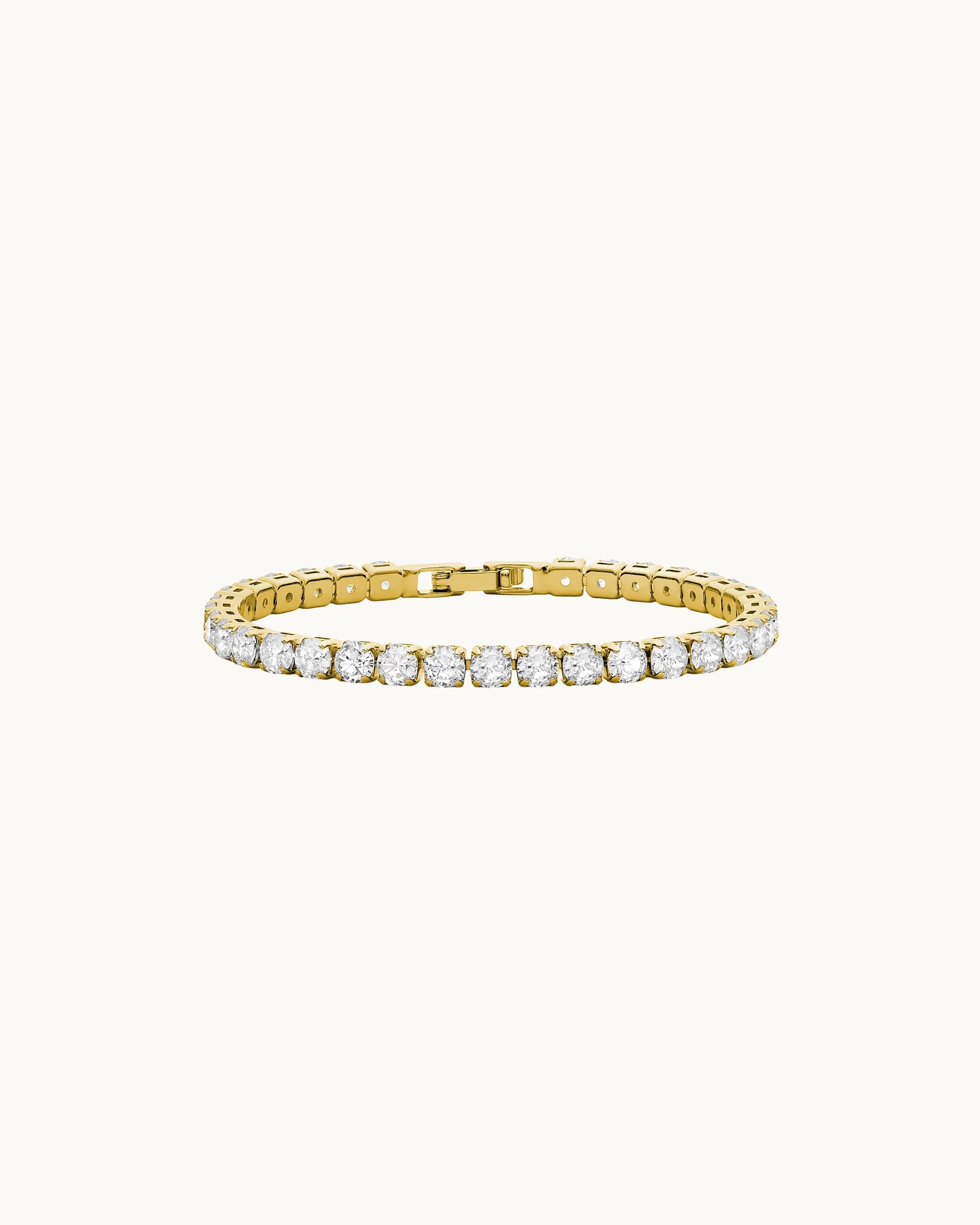 This tennis bracelet brings timeless elegance to your wrist with its continuous line of shimmering 4mm stones. Each stone is carefully set to catch the light from every angle, creating a look that’s both classic and refined.