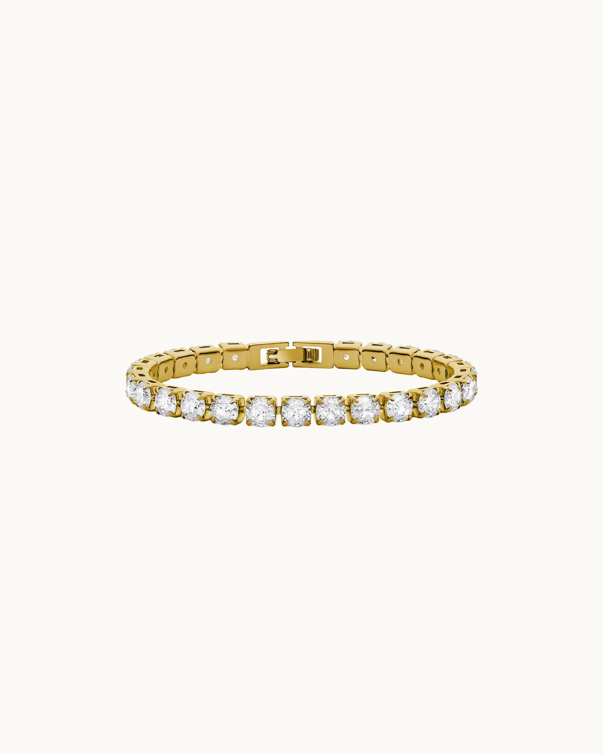 This tennis bracelet brings timeless elegance to your wrist with its continuous line of shimmering 5mm stones. Each stone is carefully set to catch the light from every angle, creating a look that’s both classic and refined.