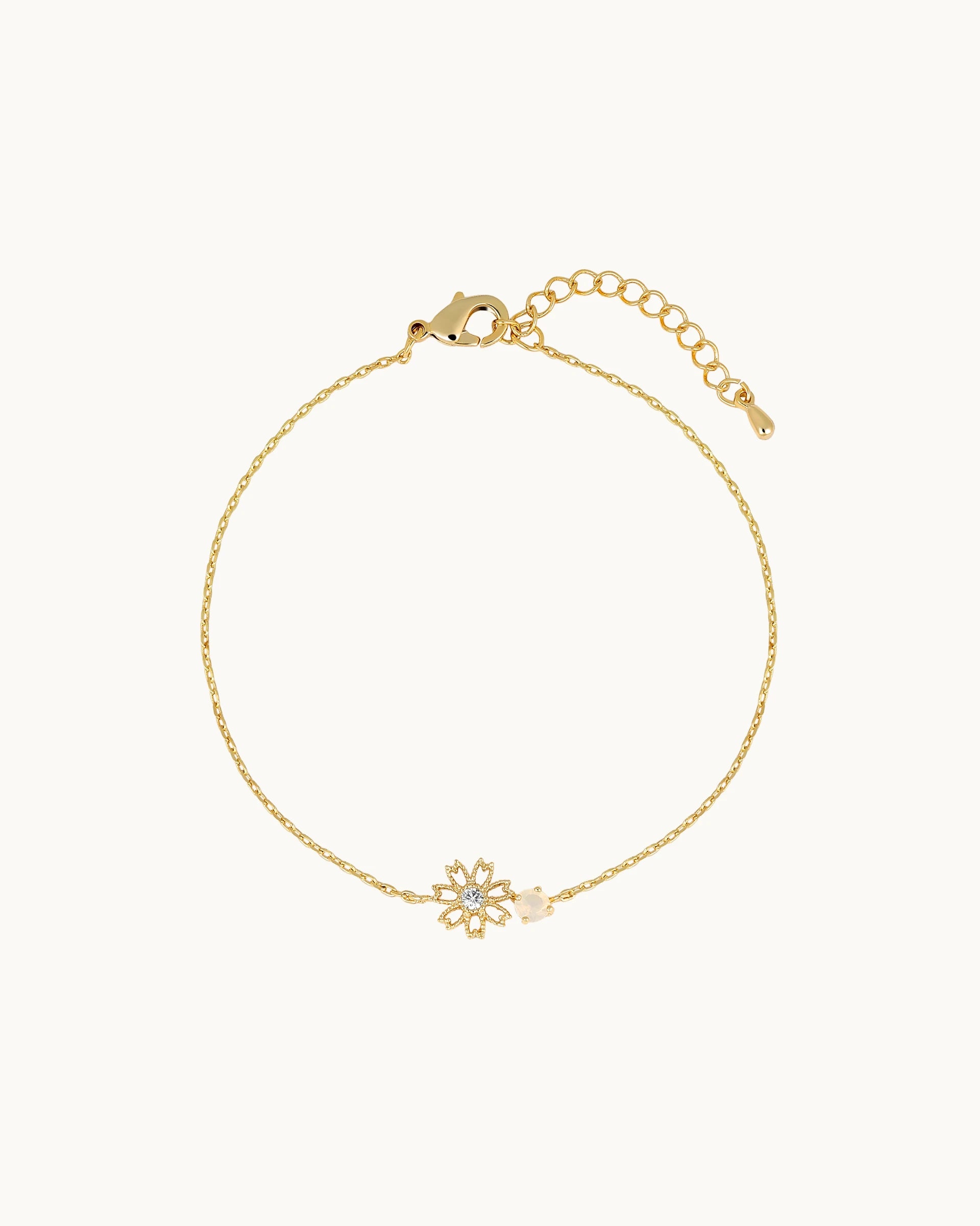 Add a delicate touch of charm to your everyday style with this floral bracelet, featuring an intricately detailed bloom accented with subtle sparkle. A soft stone detail beside the flower adds a gentle hint of contrast for an elegant, feminine finish.