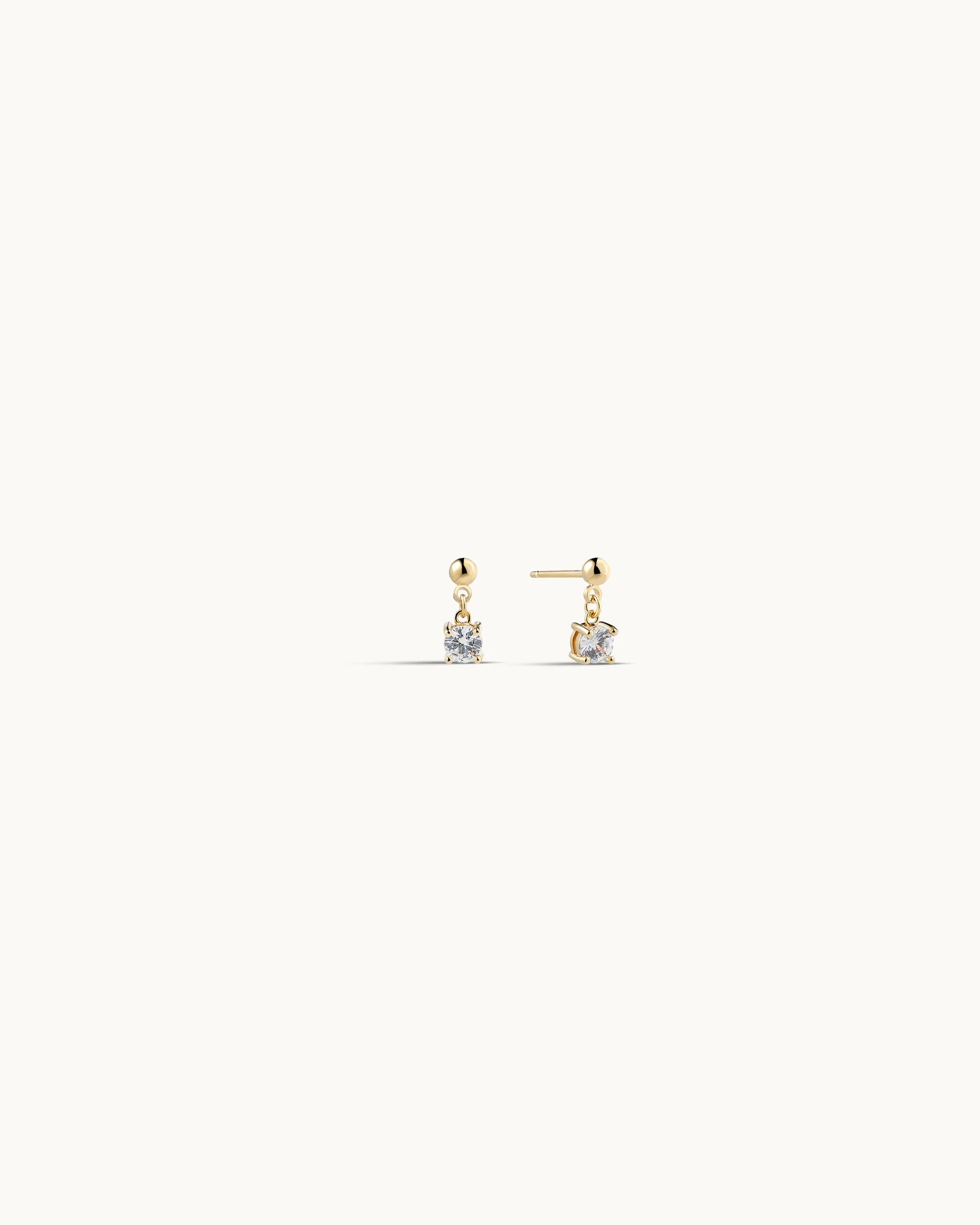 These earrings feature a delicate stud design with a sparkling stone drop, adding just the right touch of elegance and charm. The simple yet refined silhouette makes them perfect for everyday wear while offering enough sparkle to elevate special occasions.