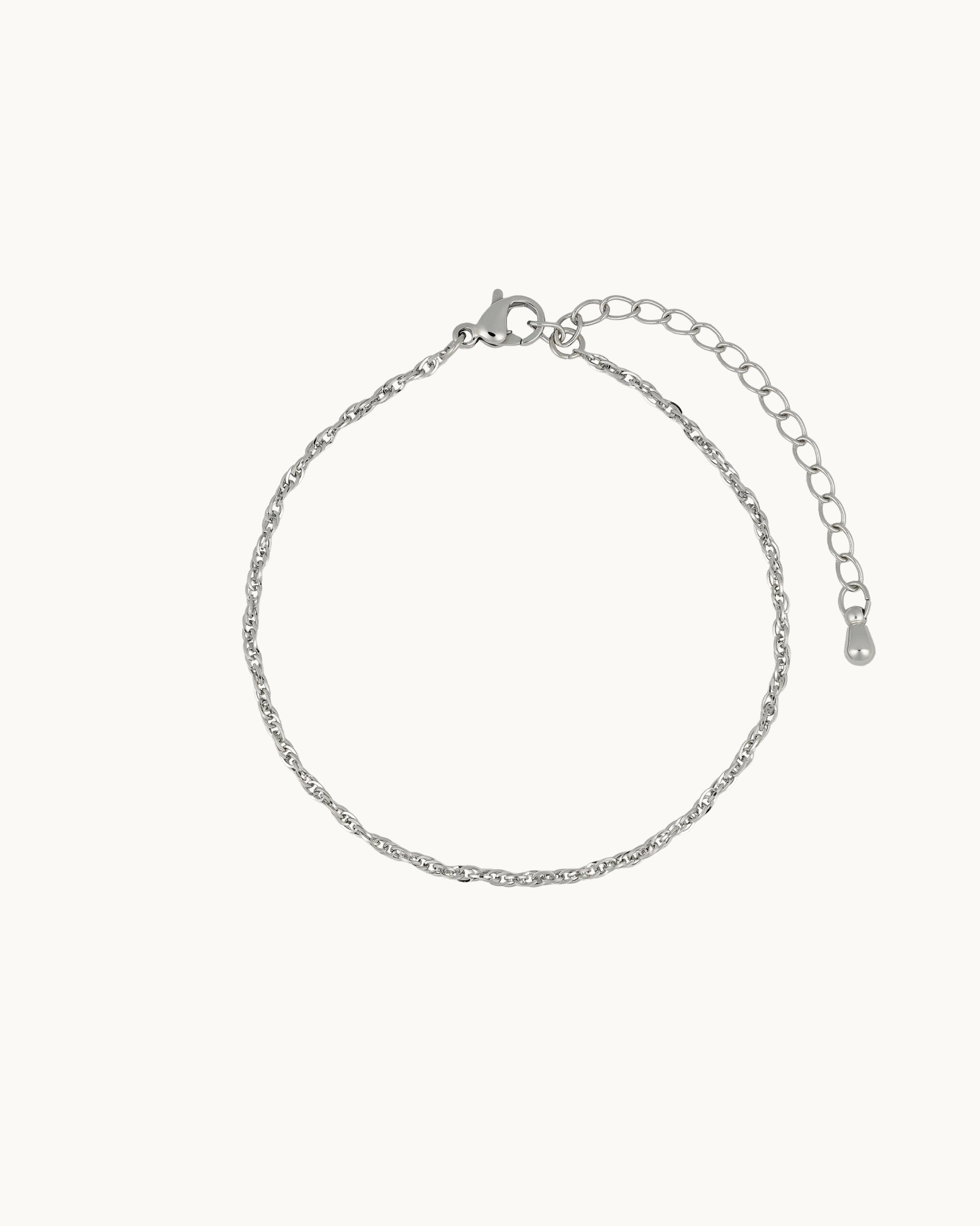 This bracelet features a twisted rope-style chain that adds subtle texture and shine, giving it a refined yet effortless look. Its lightweight design makes it perfect for everyday wear, whether styled alone or layered with other pieces for added dimension.