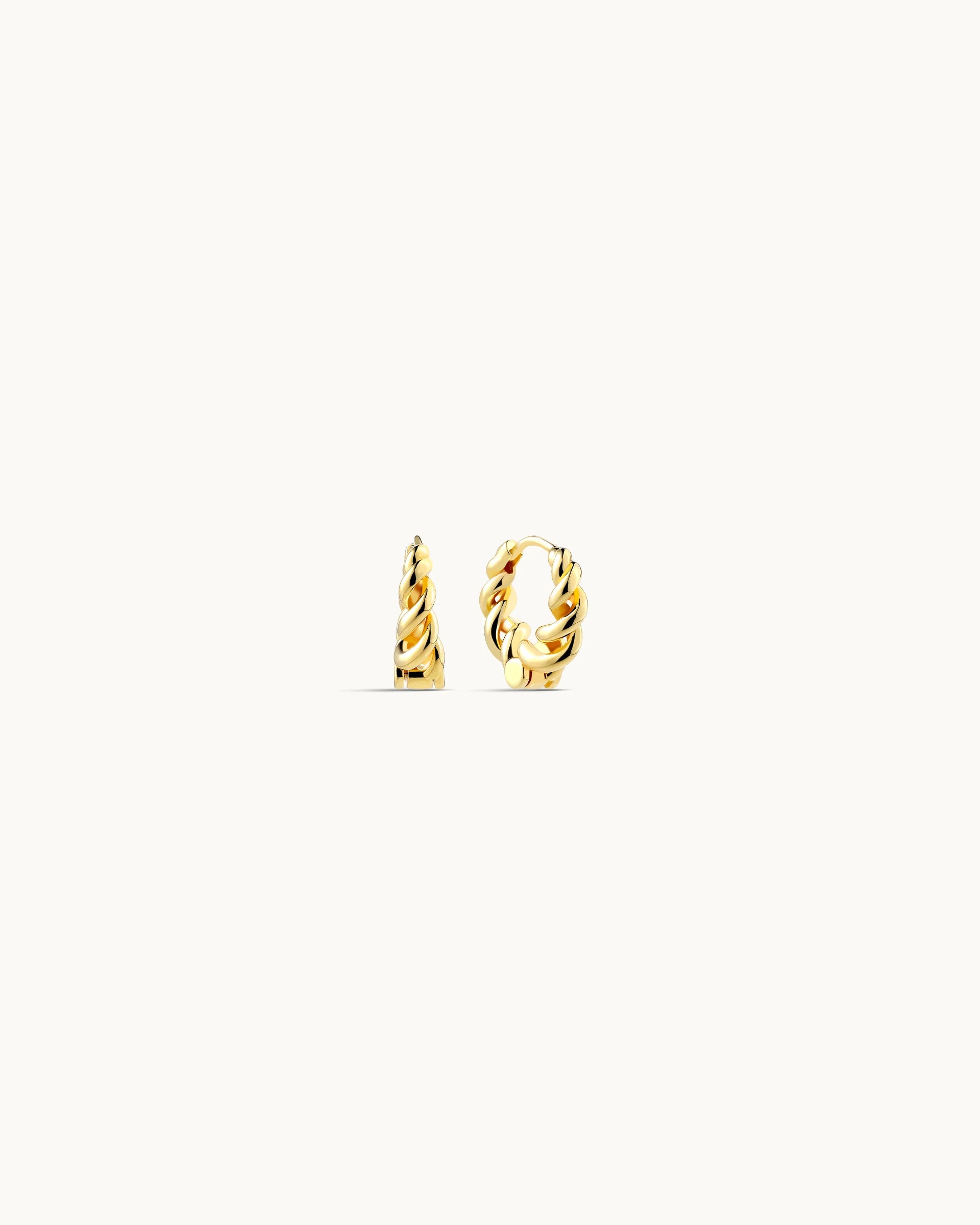 Elevate your everyday style with these twisted hoop earrings, crafted with a sculpted, rope-inspired design that adds subtle dimension and shine. The interwoven curves create a soft, fluid silhouette that feels both modern and timeless.