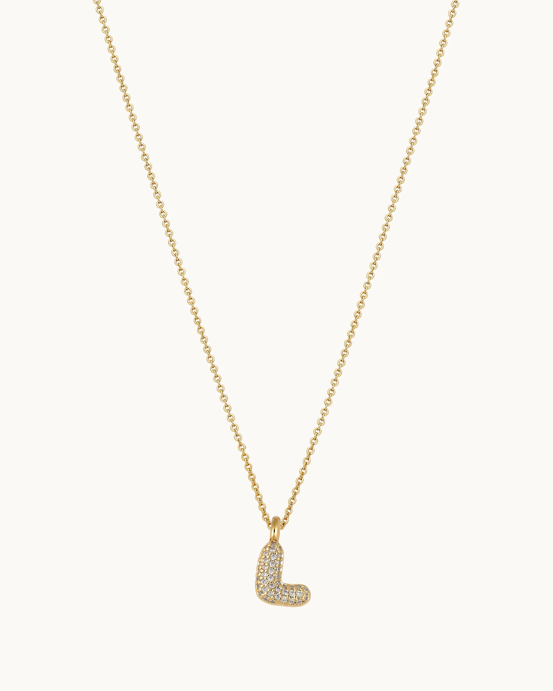 Mini Pavé Bubble Initial 'L' Necklace in Gold