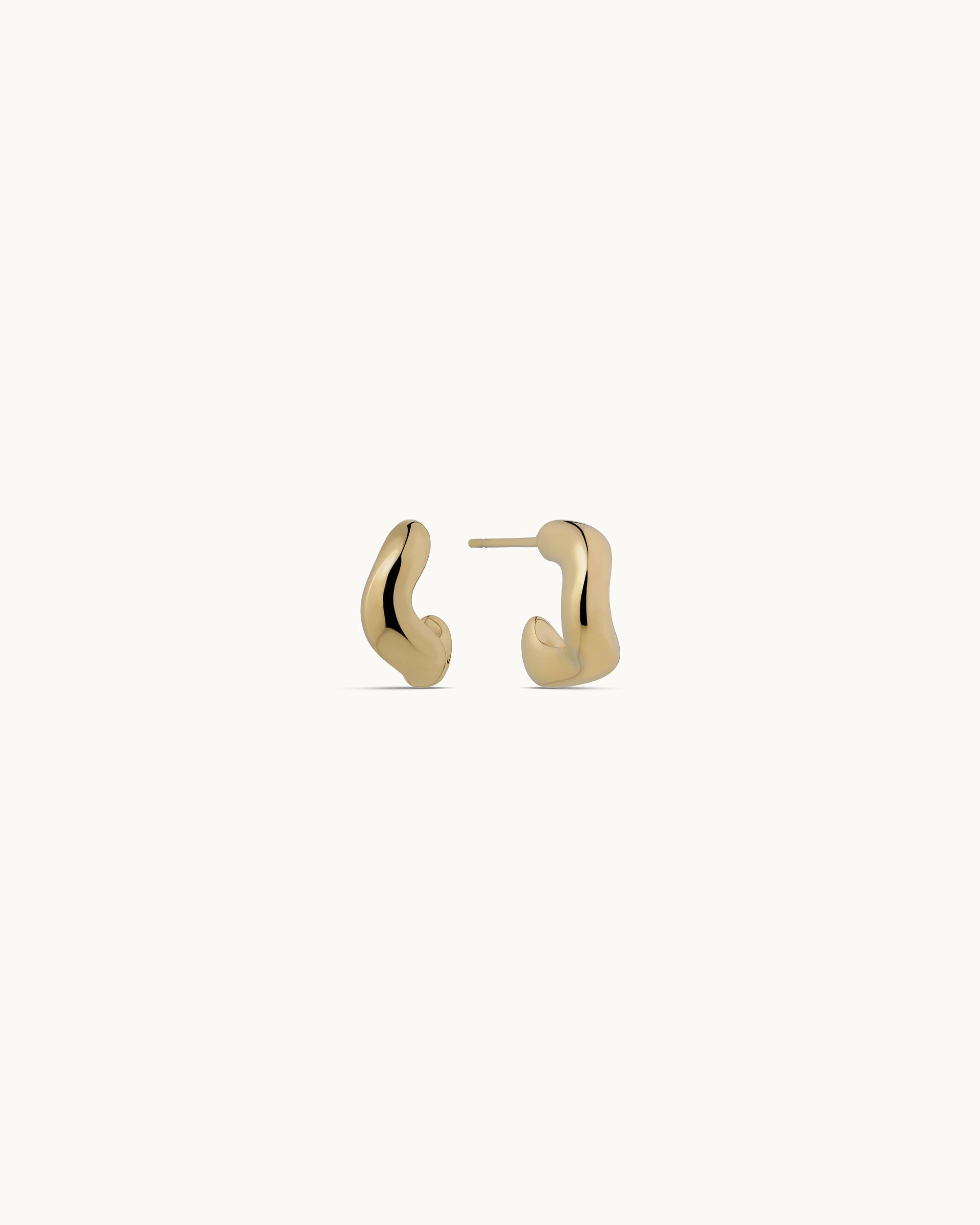 These earrings feature a fluid, sculpted design inspired by organic curves, giving them a modern yet understated look. Their smooth, rounded form adds a subtle statement that feels effortlessly wearable for everyday style.