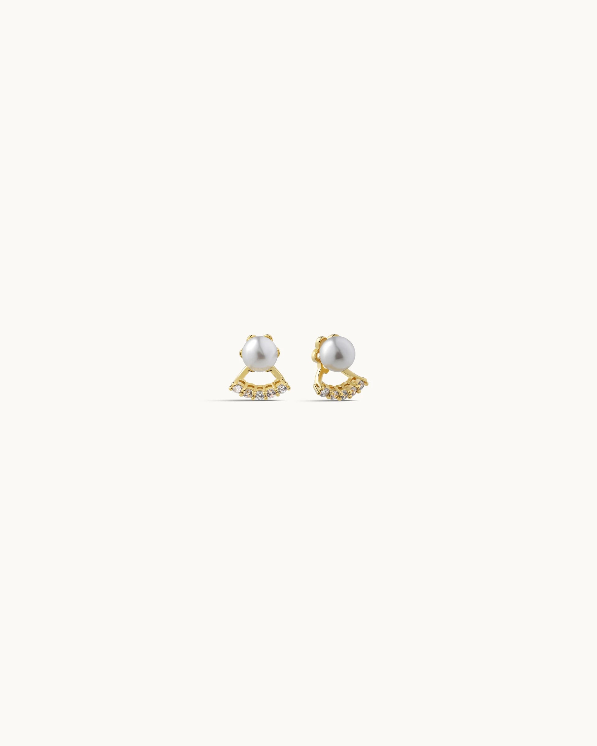 A graceful and contemporary design, these stud earrings feature a luminous pearl centre paired with a delicate fan-shaped accent set with sparkling cubic zirconia beneath. The layered silhouette adds subtle dimension and movement, creating an elegant balance between classic charm and modern detail.