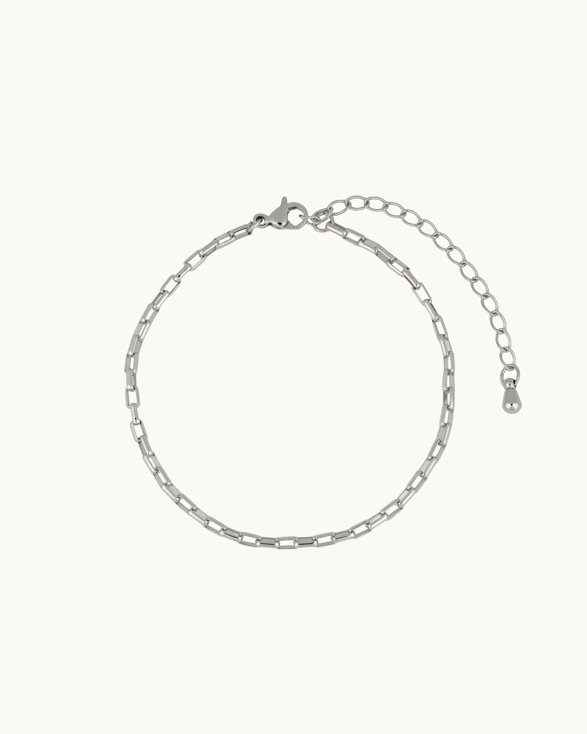 This bracelet features a sleek paperclip–style chain that offers a clean, modern look with effortless edge. Its refined silhouette makes it a versatile everyday piece, perfect for wearing alone or layering with other bracelets to build your own style.